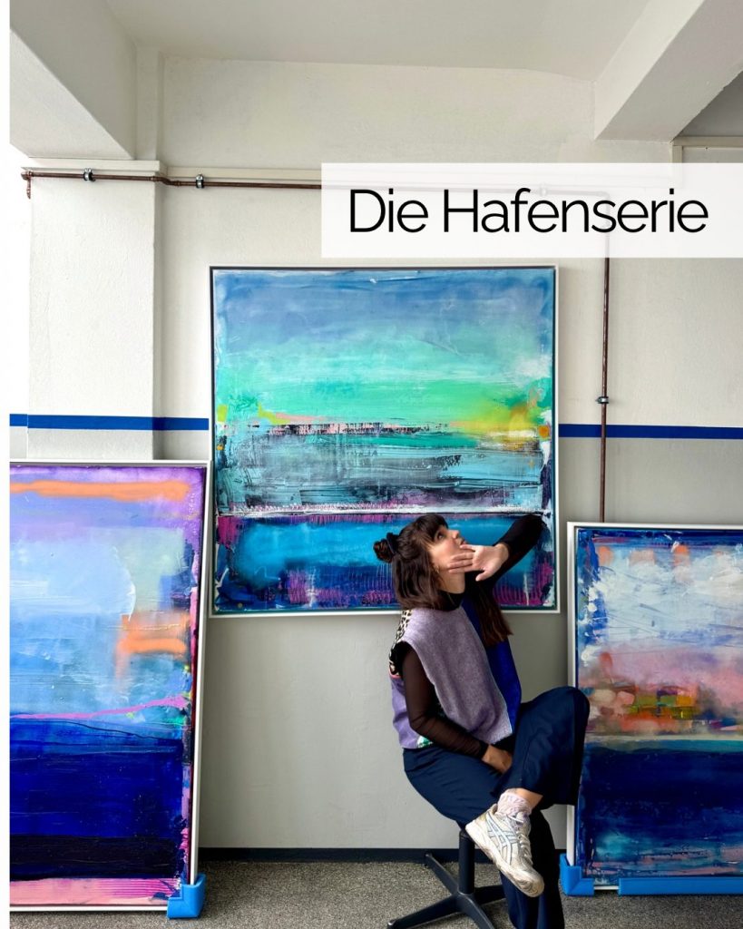 Inspiration taucht bei mir meistens genau dann auf, wenn ich aufhöre, sie zu suchen. Darum bin ich viel unterwegs und entscheide spontan, wo ich stehenbleibe und male. Manchmal ist es eine abgeplatzte Hauswand, manchmal eine Farbkombi auf der Straße. Zuletzt waren es die bunten Container im Hamburger Hafen, die mich sofort gepackt haben.