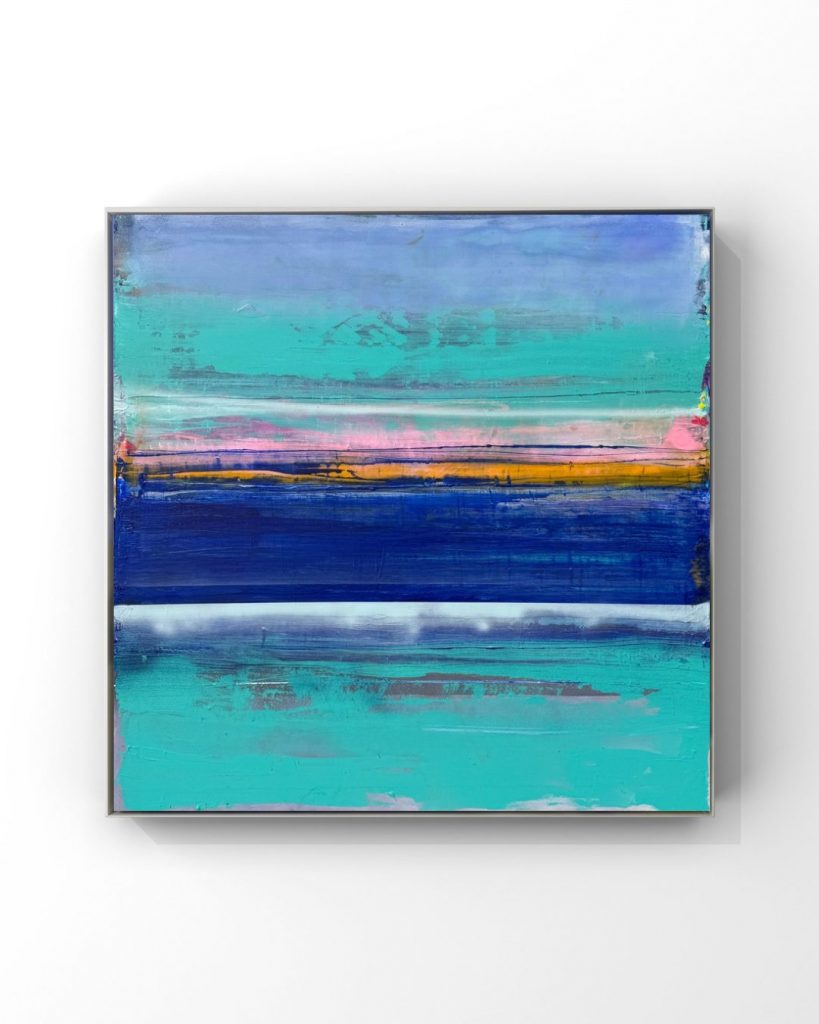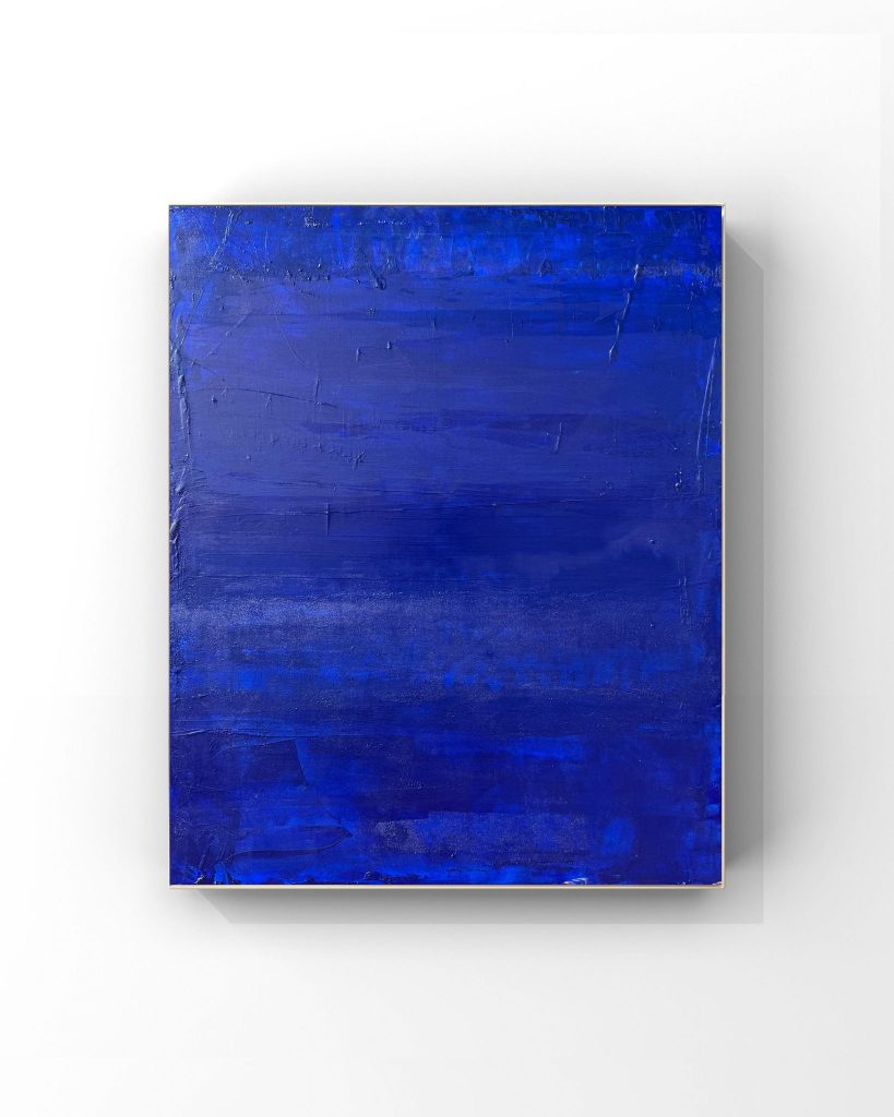 Ich habe Ultramarinblau mit Phtaloblau gemischt und ein Blau geschaffen, das tiefer, kühler und intensiver wirkt als alles andere. Schicht für Schicht habe ich es aufgebaut, bis es Raum, Tiefe und Kraft hatte.